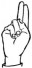 На ћирилици написано ЉУБИСЛАВ ЦРНОГЛАВАЦ састоји се из 18 слова [?]. Исписано ћириличном једноручном азбуком за глувонеме: